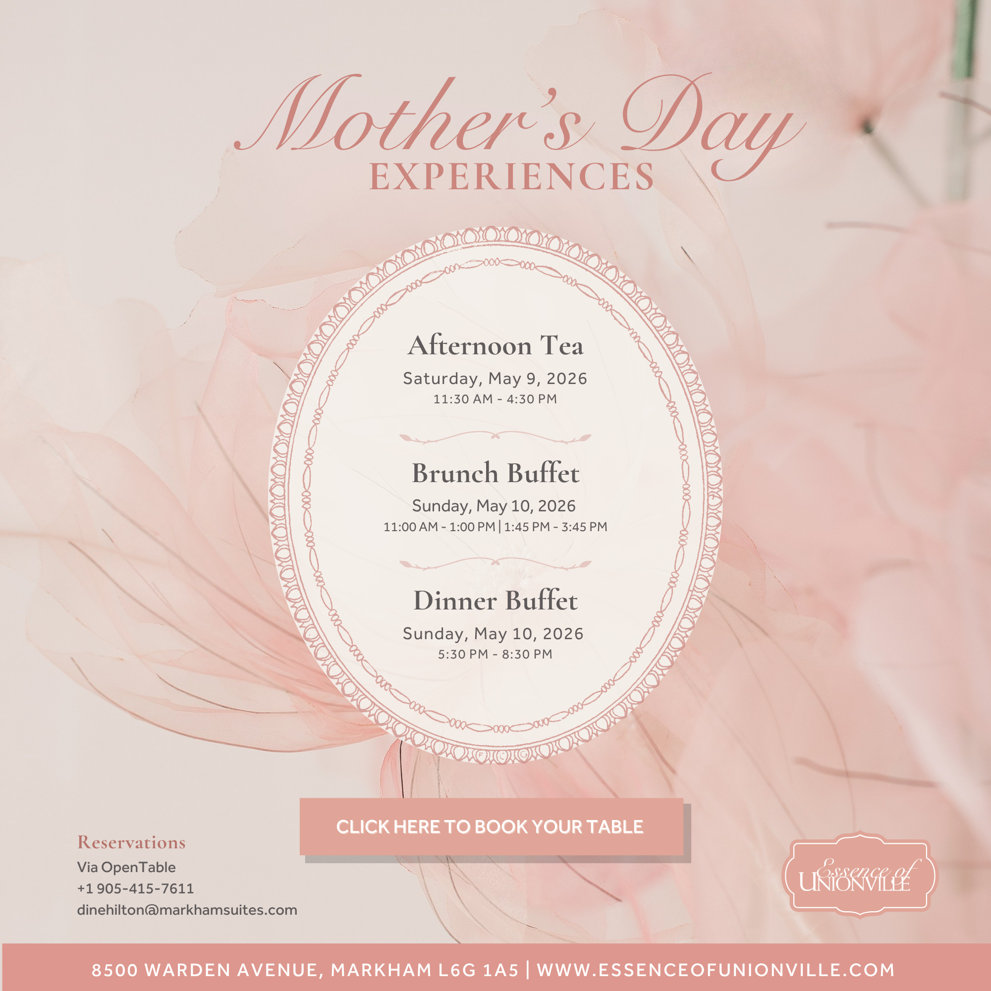 Treat her to an elegant Afternoon Tea, a beautifully prepared Brunch Buffet, or an lavish Dinner Buffet, each thoughtfully prepared to make her feel truly special. However you choose to celebrate, it’s the perfect way to say thank you to the ones who mean the most. Click here to view our special menus.
